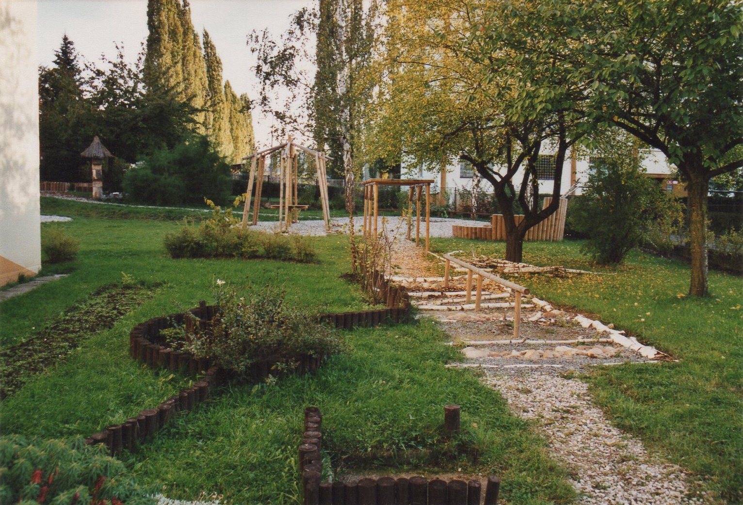 - hmatová stezka – pro seznamování se s různými materiály (písek, hlína, kůra, oblázky, tráva),
