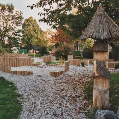 - prolézací tunel z kulatiny, osázený popínavými dřevinami,