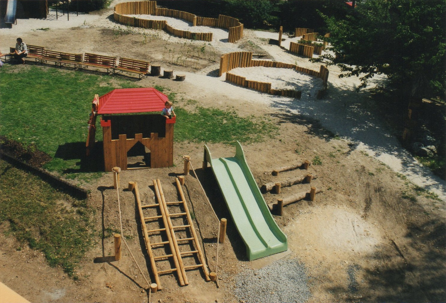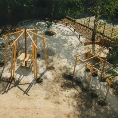 - prolézací tunel z kulatiny, osázený popínavými dřevinami,