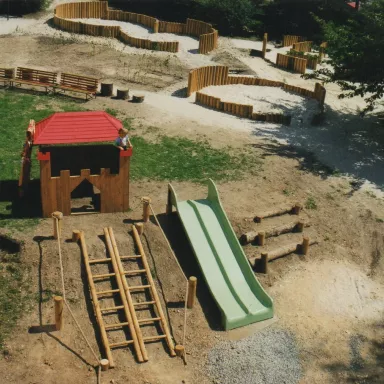 - svah pro zimní sporty, travnaté hřiště, svah s hradem, lany a žebříky, přeskoková dráha,